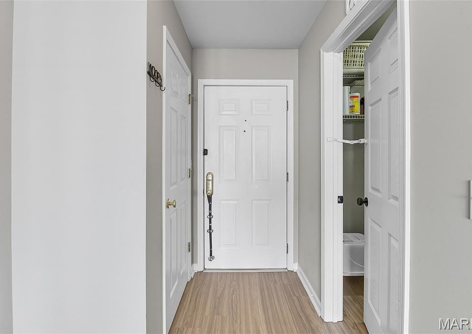 Located in St. Peters, a few minutes from highway 70, this condo is MOVE IN READY. Upon walking in you will notice the luxury vinyl in the foyer, bathrooms, and private laundry room. The eat in kitchen has a natural wood colored vinyl flooring and has sliding glass doors that lead to a covered deck that would make a perfect spot for enjoying your morning coffee. View from deck is trees and a close up tree that blossoms in spring.