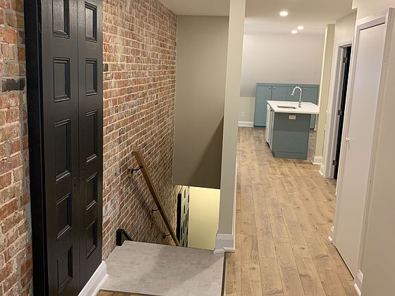 Exposed brick accent wallsOpen-concept kitchenQuartz countertopsSleek cabinetryEat-in islandIn-suite laundry