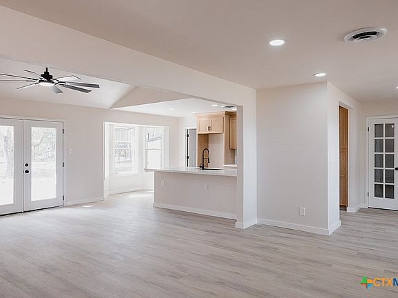 Welcome to your stunning, newly renovated brick home nestled on a picturesque 2-acre shaded lot, country living close to town. This gem boasts 4 spacious bedrooms and 2 luxurious bathrooms, along with a charming breakfast nook featuring bay windows that frame breathtaking outdoor views. The exquisite kitchen is a dream, complete with brand-new custom cabinets, sleek stainless steel appliances, a massive breakfast bar, tiled backsplash, and a hidden butler's pantry. The expansive utility room offers ample space to cater to all your needs. Retreat to the primary suite, where you'll find a generously sized walk-in closet, a beautifully tiled shower, and elegant quartz countertops. The living and dining areas flow seamlessly together, highlighted by a striking beamed ceiling. You'll love the large garage and fenced yard offering plenty of room to grow or even add a workshop. Fall head over heels for this gorgeous home, awaiting its next family!