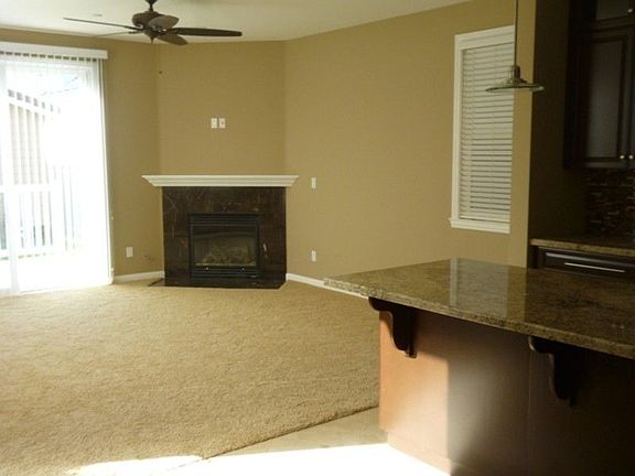 Contemporary new home beautifully decorated interior with SS appliances, Granite Counter tops, Kitchen island for easy entertaining, elegant cabinetry. FP in living room & family room, crown molding throughout, vaulted ceiling fans, spacious bedrooms, balcony off master bedroom, spa bath tubs, ornately tiled bathrooms, washer/dryer hook-up, Manicured yard, 2-car garage.