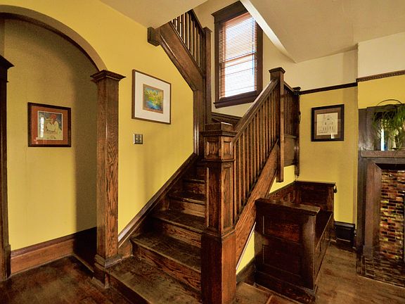 Corner lot, 3-story, turn-of-the-century American craftsman beauty! New large front porch, back porch and 1-car garage installed in recent years. Besides garage, 3 off-street parking spots. New furnace, new energy efficient windows, remodeled kitchen, remodeled bathroom and laundry room (which is convenient on the 2nd floor). 9-foot ceilings. Hardwood floors throughout, wonderful radiant heat in each room. 6 craftsman tiled fireplaces for aesthetic touches, as well as built-in bench and bookshelf, working pocket doors and picture railing. Bonus attic guest apartment with kitchenette / living / bedroom / bathroom, all updated. 10 minute walk to downtown, 20 to campus. A gem of a home! *Property taxes increased for 2015 due to county mistake but are back down.*