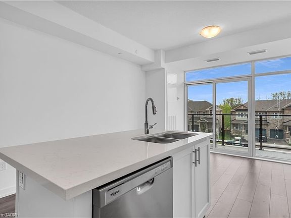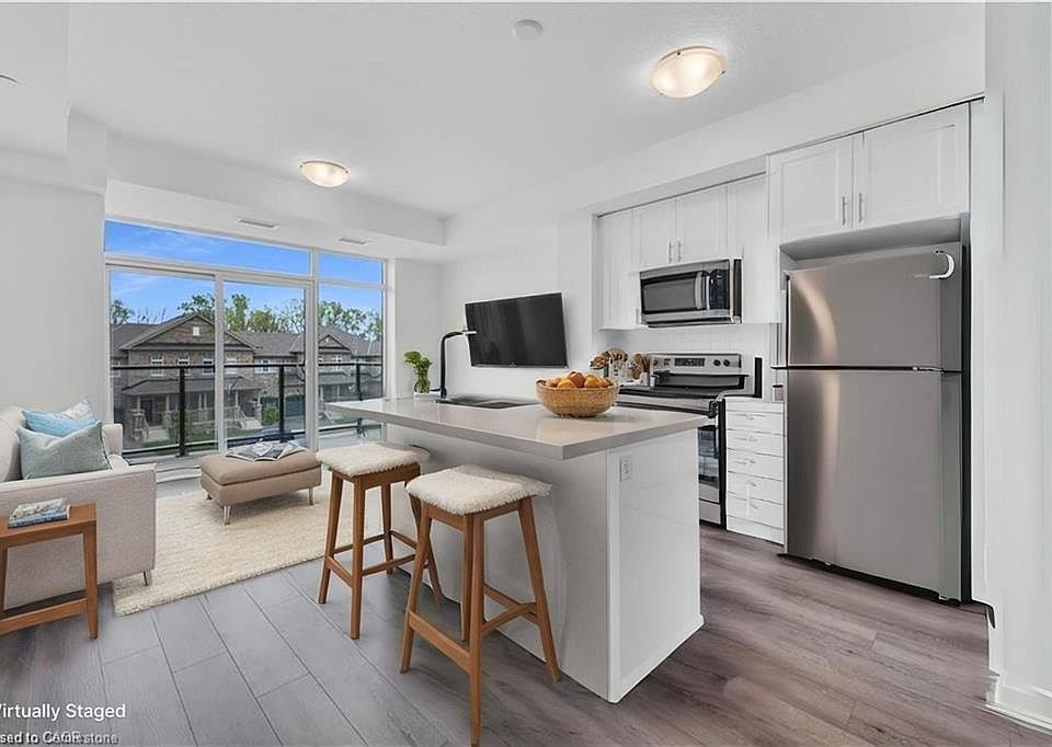 Welcome to this stunning 2nd-floor unit in the highly sought-after Trend 3 community! Step into a bright and inviting 1-bedroom condo. The open concept layout seamlessly connects the modern kitchen and living area, featuring brand-new stainless steel appliances, a stylish breakfast bar with quartz counter tops, and direct access to your private balcony. A well-appointed 4-piece bathroom and the convenience of in-suite laundry complete this thoughtfully designed space. Enjoy a lifestyle of comfort and convenience with exceptional building amenities, including vibrant party rooms, a state of the art fitness center, scenic roof top patios, and secure bike storage. Located in the heart of Waterdown, this home offers effortless access to top-rated dining, shopping, schools, and picturesque parks. Included with the unit is 1 owned surface parking space and an owned locker for extra storage. Experience contemporary living at its finest in this exceptional condo!