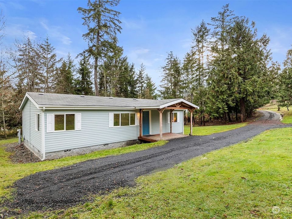 Welcome to one level living, in a peaceful rural setting. Enjoy the solitude of over an acre of useable property. Refreshed home an open concept layout that lives large. Vaulted ceilings, easy care laminate flooring, wainscoting, and updated trim. Soothing neutral color scheme throughout. Kitchen boasts plenty of counter space, and thoughtfully designed storage. All appliances stay, including washer and dryer. No fuss metal siding and composition shingle roof. Low maintenance landscaping and evergreen privacy screen creates your own private retreat. Detached carport and shed offer storage and covered parking. Convenient location is minutes to restaurants, shopping, and schools, but feels a world away from it all.
