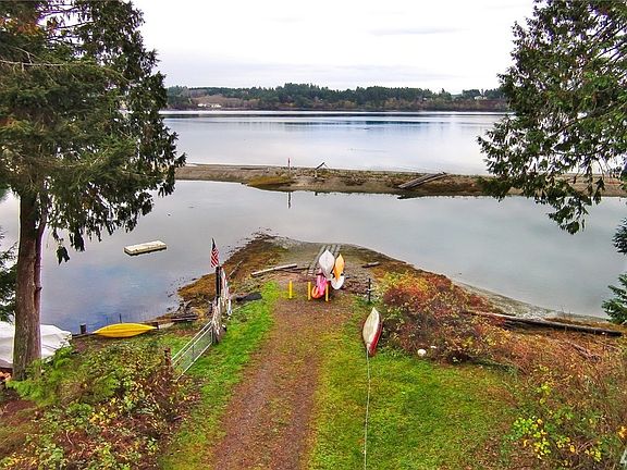 Paradise in Pirates Cove. Water views galore! Ideal as a vacation home or full time residence. Features include 2 decks and a patio for outdoor enjoyment. Zero bank waterfront to grow your own oysters. 3 large bedrooms, 2 1/2 baths, kitchen with lots of cabinets and all appliances. Kitchen eating or formal dining. Double garage and covered carport for toys. Home is in excellent condition and ready for you. Zillow values this property at over $534,000. Take advantage of this true value.