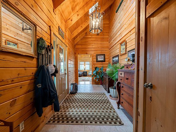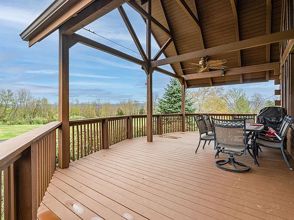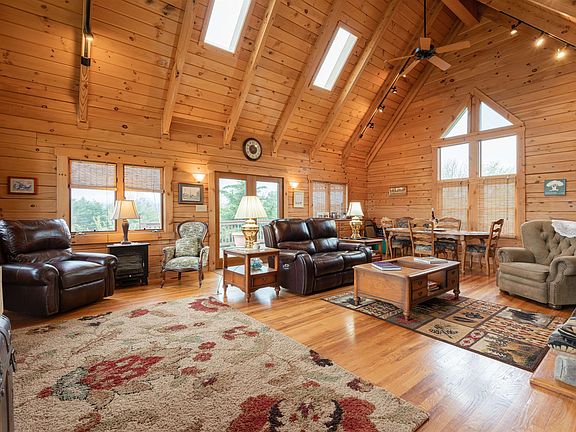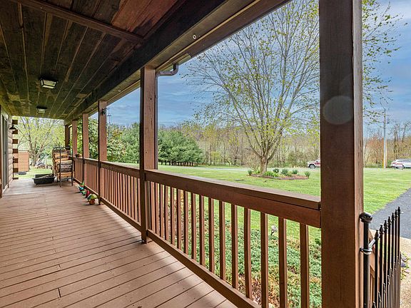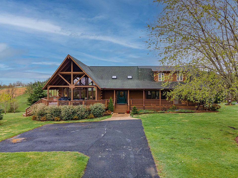 Beautiful log home resting on over 3 acres. Great views of the Blue Ridge mountains from the expansive partially covered deck. The owners have lovingly taken care of this home for more than 15 years! Solar system helps reduce your monthly electric bill. The basement is partially finished with a family room and plenty of storage space including a workshop. Large eat-in kitchen with a functional wood stove. Main floor bedroom could serve as a home office and has a door leading right to the back deck. Come relax on your porch swing in this country home just a little over a mile from the popular Ridgemore Estates. Horses are allowed and the neighbor does have a few!