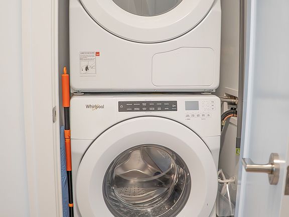 Welcome to this stunning modern 1-bedroom plus den condo at The Well by Tridel, offering breathtaking skyline views. This spacious, open-concept suite features a sleek kitchen equipped with energy-efficient, 5-star stainless steel appliances, an integrated dishwasher, and contemporary soft-close cabinetry. Enjoy 9-foot ceilings, laminate flooring throughout, a full-size washer and dryer, a glass-enclosed standing shower, and floor-to-ceiling windows with coverings included. The generous bedroom offers plenty of space, while the versatile den can easily serve as a separate room or home office. Exceptional building amenities include a party room, multimedia lounges, an outdoor terrace and lounge with BBQs, games room, rooftop pool and patio, private dining room, fully equipped gym, dog run, sun deck, and more. Located just steps from the Rogers Centre, CN Tower, public transit, subway stations, and the vibrant Entertainment and Financial Districts.