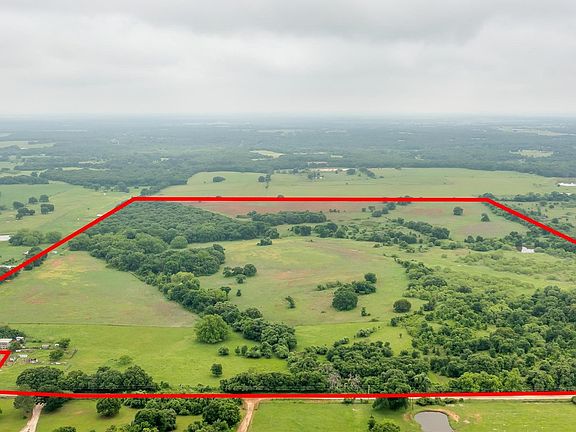 Are you searching for land adorned with beautiful oak trees? Look no further than this 100+ acre property, which features a well-maintained brick home! The house includes a primary bedroom with an ensuite bathroom, along with two additional bedrooms that share a bathroom. The kitchen boasts lovely granite countertops and is open to the living and dining areas. Conveniently located off the kitchen are a utility room and a half bath.