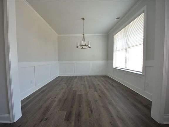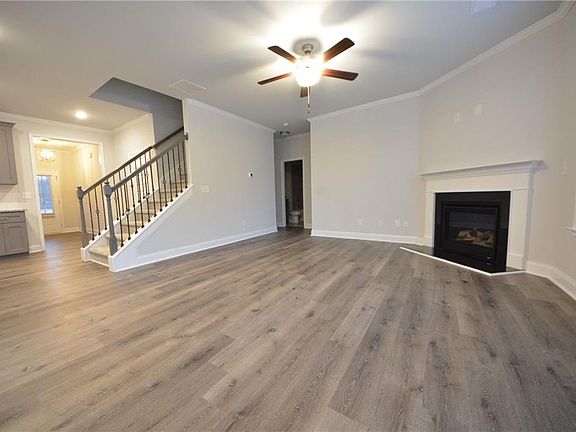 There are 4 bedrooms upstairs with a large LOFT area. Hardwoods on main living areas, iron rails, fireplace, granite in kitchen and all baths, SS appliances, 42" painted shaker cabinets, 5" base boards, crown, and wainscoting. tiled showered walls and floors, blinds on front of home.the community located off of Hwy 53 just 6 minutes west of 85. House will not ready to move in until Early JULY .