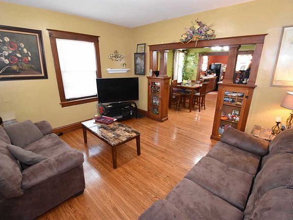 Craftsman style charmer with beautiful oak flooring, trim and doors has so much character! The covered front porch is perfect for sitting out enjoying the cool evenings. Be welcomed in with the solid oak built-in coat nook. 9' ceilings and hardwood floors and beautiful original wood trim throughout. The living room and dining room are gently separated by built in craftsman style oak partitions. Fresh paint and plenty of windows for lots of light. Updated kitchen boasts stainless appliances, updated cabinets and countertops and a great walk in pantry! The main floor has 2 nice sized bedrooms and a full updated bath. Theres a walk up attic space that may be able to be finished for so much additional living space. The partially finished basement has a huge open room with a spacious closet as well as the 2nd full bath. The laundry room has dual sink bays and lots more storage space. Theres a large deck and patio space in the back of the house as well as a 2 car detached garage.
