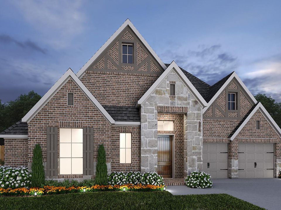 Welcoming entry framed by home office with French doors. Media room with French doors just off the extended entry. Spacious family room with a wood mantel fireplace and wall of windows. Island kitchen with built-in seating space, a double wall oven, 5-burner gas cooktop and a walk-in pantry. Dining area with walls of windows that offers a backyard view. Primary suite features three large windows. Primary bathroom offers dual vanities, freestanding tub, separate glass enclosed shower, linen closet and two walk-in closets. Secondary bedrooms with walk-in closets a full bathroom and a Hollywood bathroom complete this generous design. Extended covered backyard patio. Utility room and mud room just off the three-car garage.