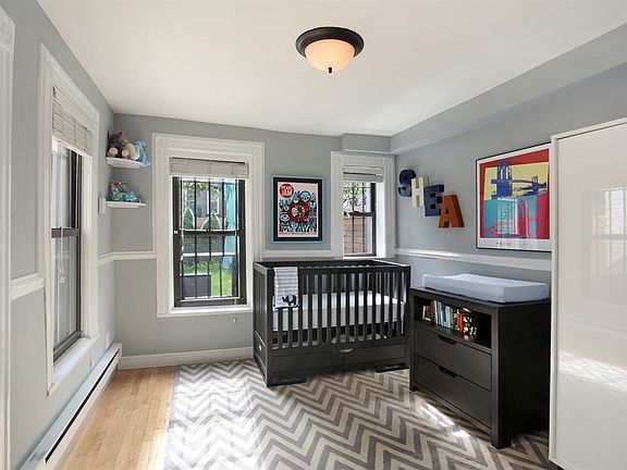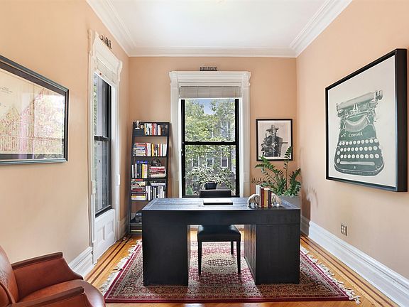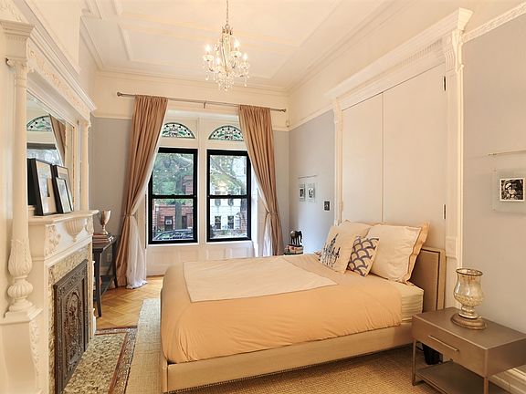 470 Mac Donough Street is a truly move-in ready three-story, two-family brownstone featuring a host of original details. Previous owners have updated the house throughout, yet many of the house's original details are intact, including fireplaces, stained glass, original hardwood floors, mouldings, ceiling medallions, original shutters, and pocket doors. The owners duplex consists of the parlour and garden levels. Both of these floors extend to 52' ft in length. The parlour floor that has 11 ft ceilings consist of an office (or bedroom) with two full windows on two exposures giving the room ample light. The large living room, complete with a fireplace and built-in storage closets, floods with light from the adjoining office windows and additional garden facing window. A bathroom and a large, bright, north-facing bedroom completes the floor. The garden level consists of a large living (or dining room) with original wainscoting and fireplace, a separate dining area, kitchen, bathroom and a south-facing bedroom with access to the beautiful garden. The third-floor rental consists of two bedrooms, a living room, a kitchen and a bathroom. Close to Tribeca Pediatrics, Jackie Robinson Park Tennis Courts, and restaurants and bars such as Mama Fox, Nana's Raman and Trad Room. 7 min walk to express A/C subway stop at Utica Avenue. 4 min walk to B26 bus service on Halsey serving Bed Stuy, Clinton Hill, Ft Greene and downtown Brooklyn.