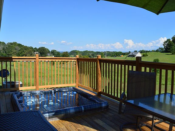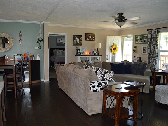 Country charmer sitting on two lots with mountain and countryside views! This upgraded manufactured home offers custom flooring, drywall, crown moulding, doors and more. You will love the open concept with attractive kitchen and split bedroom design. The kitchen offers plenty of storage with an abundance of cabinet space and pantry. Outside you will find a private deck with hot tub, large back yard, storage shed and more. Check out this great home today!