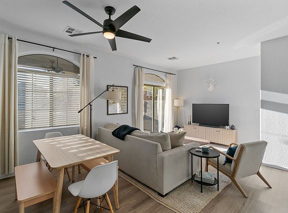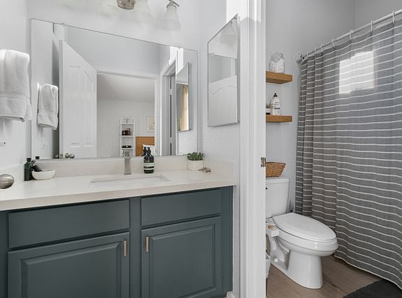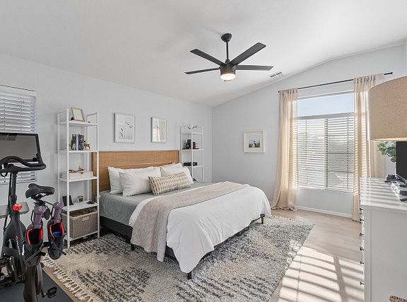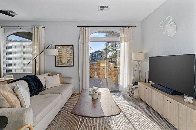 Walkable to Target, restaurants and other shopping. !0 minutes from Goodyear Civic Square with more restaurants, events and shopping. Easy access to 303 and I-10. 10 minutes to Abrazo West Campus and the Goodyear Airport. Bright and spacious main living area with modern finishes and neutral tones, perfect for relaxing after long shifts. Features updated cabinetry, stainless steel appliances, and quartz countertops fully equipped and ready for meal prep. Three generously sized bedrooms, including a primary suite with a private bathroom and walk-in closet. Ideal for families or students who may need to share space or have guests. 2.5 updated bathrooms with modern vanities and fixtures. In unit laundry.