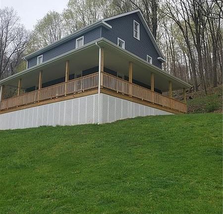 All new for you! New siding, new windows, new roof, new wiring, new wrap around porches, Great room, kitchen, 2 baths, 4 bedrooms, new flooring! all on 37.8 acres with GAS RIGHTS!!! 200,000 cubic free gas. Royalties. New drive and parking. City water and septic system. Fourth bedroom is entire 3rd floor, or bonus room. Septic in front yard.
