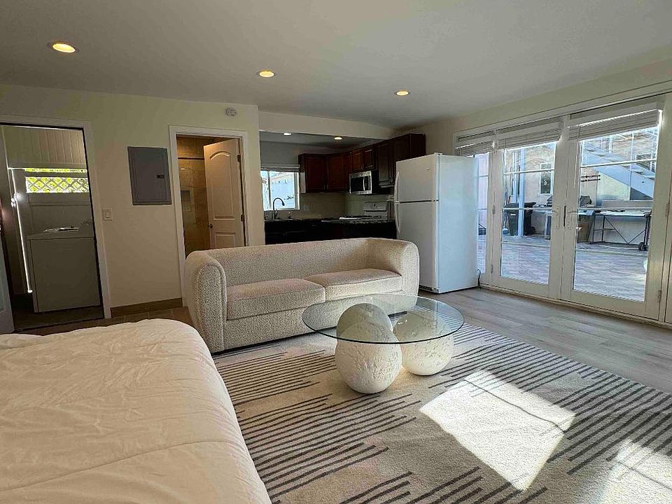 Furnished, fabulous, Large, and Bright brand new ADU with one room & 1 bathroom. Good size kitchen with refrigerator, oven and microwave . Washer and dryer inside the unit, and truly feels like a house with view of the yard. Great location near Cedars-Sinai and Beverly Center shopping mall. 24 hours notice to show .Has tenant on it till end of November.