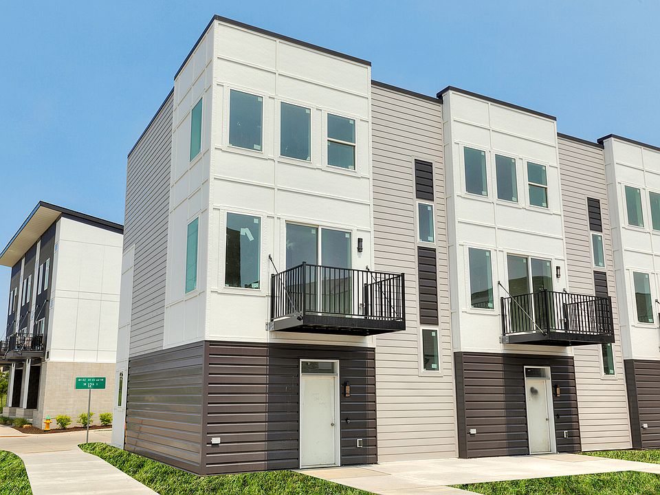 The Preston plan is a three-level townhome with 1,288 square feet of space with two bedrooms, 2.5 baths, and a two-car attached garage. The second level has a large living space that features a kitchen that opens up to into a formal dining and living room, as well as a half bath. The third level features laundry, primary suite, another bedroom, and a full bathroom.