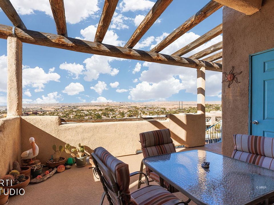 Stunning Views - Fully Furnished and Move In Ready. Situated on a premium end location next to guest parking, this well-planned condominium includes three bedrooms, two bathrooms and two exterior storage closets. Enjoy breathtaking city, mountain, and flat top mesa views with stunning sunset views from the large front patio. The front patio offers an inviting space for entertaining while the private balcony off the primary bedroom provides a peaceful retreat with sunrise views. Recent upgrades include fresh interior paint, new vertical blinds in the living room, kitchen, and guest bedroom, updated ceiling fans in the living and primary bedrooms, and a new heat pump with full furnace installed in March 2025-covered by a 10-year transferable warranty. The kitchen includes a reverse osmosis water system that also supplies the refrigerator's ice maker. Appliances in both the kitchen and laundry areas are included, and the property can be sold fully furnished with d cor at no additional cost. Homeowners also enjoy access to the Mesquite Vistas clubhouse, featuring a resort-style outdoor pool and spa, fitness room, and courts for pickleball, tennis, basketball and volleyball. Come see this property for yourself.. before it is gone!