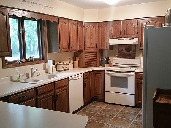 Well cared for single family home on 3 private acres, set back from the road in a quiet neighborhood. 2 car attached garage with finished interior (used as rec room) and 30x32 detached insulated garage (holds 3 cars +). Open concept kitchen/living/dining room, master bath accessible from bedroom and hall. Country setting, close to town. See it today!
