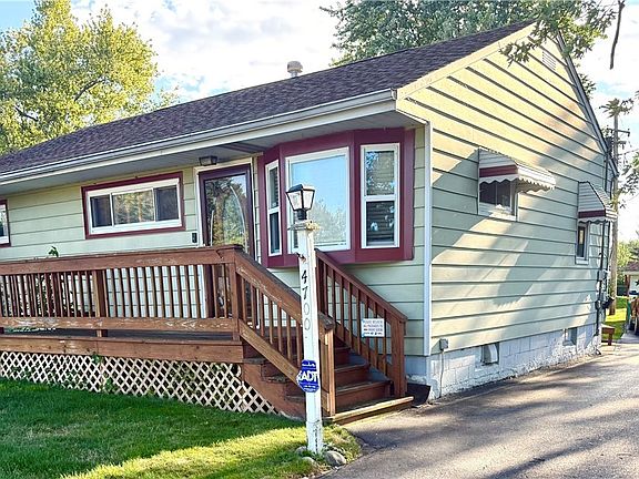 Located a few houses from Lake Erie, this Alum-sided Ranch with finished basement offers a front and back deck for relaxation. Oversize living room (due to removing the third bedroom) offers a bay window. All appliances, corner hutch, and laminate flooring in the eat-in kitchen. Two bedrooms with ceiling fans and a full bath on the main level. Basement is finished with carpet, a bar and the pool table stays. There is a second full bath in the basement, also a laundry room with a tub, washer, and dryer. Replacement windows, attractive lead glass front door, Two-car detached garage. 12-month home warranty. All on a .20 acre lot.