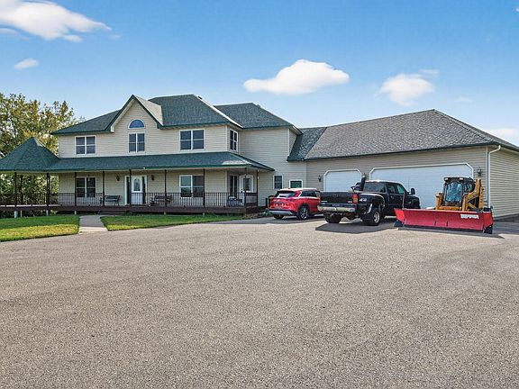 Welcome to 80 acres of peaceful country living, featuring over 60 acres of tillable farmland along with beautiful wooded areas. A long driveway leads you to this country dream, complete with a spacious home and a large wraparound front porch. Inside, the main level offers a wide-open layout with a huge kitchen, an oversized island, and plenty of room to entertain. Upstairs you’ll find five bedrooms along with a convenient laundry room. The large primary suite includes a generous private bath, while solar panels provide energy efficiency. Outside, a 40x60 outbuilding with horse stables offers endless opportunities for hobby farming or storage. This property does need some updating, but it’s the perfect place to create your country retreat.