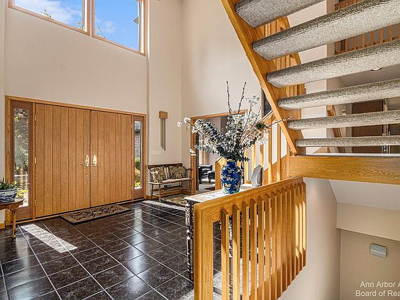 You will not find a more unique & spectacular estate setting near Ann Arbor than what this stunning contemporary has to offer! Over a mile of winding walking/riding trails w/ towering white pines, honey locust, maple, & more offering sunlit seclusion in its panoramic setting. Charming pond & large outbuilding/barn add many additional lifestyle opportunities. 15 minutes to AA's downtown where restaurants, culture, & opportunities abound. Enter through stately doors into the 2 story foyer with spacious great room just beyond offering a world of large transom Andersen windows & fireplace with views of nature. Wrap-around deck for entertaining w/ French doors flanking both sides. Quality kitchen cabinetry w/ Corian counters, Sub Zero, newer tile floor & bfast nook overlooks the deck. 1st floor floor primary w/ private twin vanities, bidet, spa tub, wrap-around shower, walk-in closet & its own private 2 level deck. Loft study overlooking the great room & 3 spacious bedrooms & 2 full baths up. High ceilings in the par fin walkout w/ fireplace. Newer mechanicals including roof (2 yrs), Lennox HVAC, Kinetico, & new whole house gen. Home can be purchased w/ 15 ac or 25 (develop opport. w/ perks & engineering nearly complete)., Primary Bath, Rec Room: Partially Finished, Rec Room: Finished