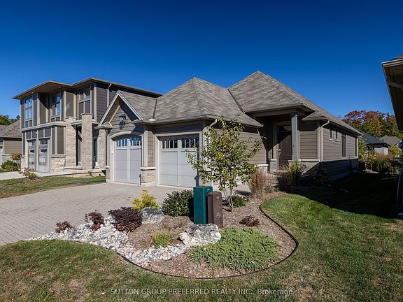 This impressive upgraded bungalow in desirable Village on the Thames in Dorchester provides an open-concept main floor featuring a chef's dream kitchen with an oversized granite island, gas stove, and pot lights, opening to a family room with tray ceiling and gas fireplace. The primary bedroom includes two double closets and a private ensuite, while a second bedroom and full bathroom provide additional space. Enjoy main floor laundry, 9-ft ceilings, and a fully finished basement with a large rec room, two bedrooms, a three-piece bath, and ample storage. Outside, a spacious concrete patio with a gazebo, gas BBQ line, makes this home perfect for entertaining. Located just 10 minutes from London and 2 minutes to the 401, this Vacant Land condo offers low-maintenance living with a $235 monthly fee covering lawn care, snow removal and common elements.