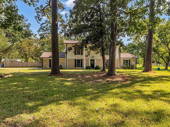Bring all of your animals, big boy toys and family to this home on 4.3 acres. Workshop, barn, stalls, pond and majestic trees are just a few of the outside amenities. Inside you will find an open floor plan with 3 bedrooms and 2 bathrooms. Granite in the eat-in kitchen with an island . Living room with a wood burning fireplace. Large bedrooms. Laundry room is located inside a room the garage but has A/C-Heat, sink and a commode. Did not flood during Harvey.