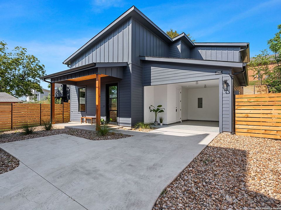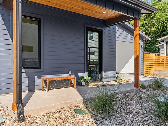 Beautiful, modern new construction in hot East Austin, this custom 2 bedroom, 2.5 bath home is sure to impress with smooth level 5 walls, 15' vaulted ceilings, wide plank wood flooring, sleek cabinetry with soft-close construction, and many thoughtful design elements to bring the feel of luxury, warmth and functionality. Enter the main level through your custom steel door into the living and dining space, which is open to the kitchen and provides ample space for entertaining and gathering. The kitchen features quartz countertops, upgraded white cabinets, stainless appliances, including a 30" range and refrigerator, pantry, and eat-up bar. Outdoor gathering spaces include a covered front porch and rear patio featuring tongue and groove ceilings, and a terraced and fenced rear yard, ready for your gardening vision and furry friends. The primary bedroom is on the main level and secondary bedroom is upstairs, both with en-suite bathrooms and custom finishes. The primary suite overlooks the back yard and features a floor-to-ceiling tiled shower and walk-in closet. The full-size secondary bedroom could serve as an office or flex space. Unit 2 includes a single carport with epoxy floors. This home is located just off Springdale Rd., across from Givens District Park, within walking distance to Springdale General, and is a short distance to art galleries, local eateries, 2 miles to Mueller and 3.5 miles to downtown Austin. New owners will receive a 1-2-10 Yr Builder Warranty for peace of mind. *All measurements, taxes, age, financial & school data are approximate and provided by other sources. Buyer should independently verify same before relying thereon.*