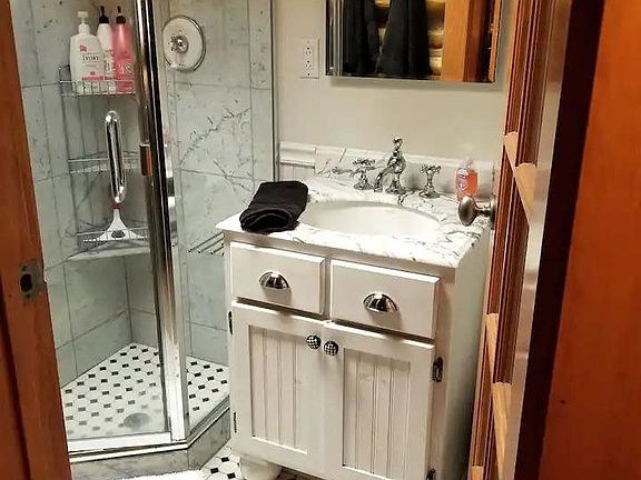 This Slice of Heaven log cabin enjoys a great location on Crooked Lake--right across from the popular Crooked Lake sand bar, and along US-31 for quick trips into Harbor, Petoskey, and Mackinaw, or skiing and snowmobiling in the winter. One bedroom, one bath, with a full-sized bed in the bedroom, and a sleeper sofa in the living room. The kitchen includes a big farmhouse sink, medium-sized refrigerator, microwave, toaster oven, electric skillet, and a single burner cooktop. Plus, a bbq grill on the patio. It includes 25' of dock space on one of the association's two docks. Some storage space is available in a shared garage. Bike trail/Snowmobile trail right across the street! No showings before Thursday, Jan 26.