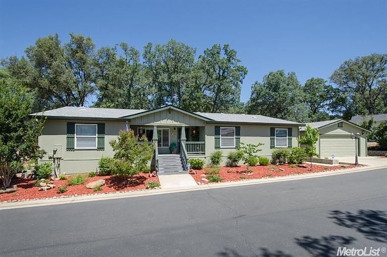 Gorgeous Easy Care Triple Wide Home Built In 2003 with a Beautiful Interior and Exterior. Kitchen Island w/ granite counters, Upgraded S/S appliances, abundant storage and lots of bells & whistles. Plenty of Interior space w/ formal living room, dining room plus an office that could be 4th bedroom. Upgrades include cement siding, Trex front porch deck, covered patio,storage shed, 2 car garage w/ plenty of storage cabinets. All on a single level with a gorgeous water monument and backyard.