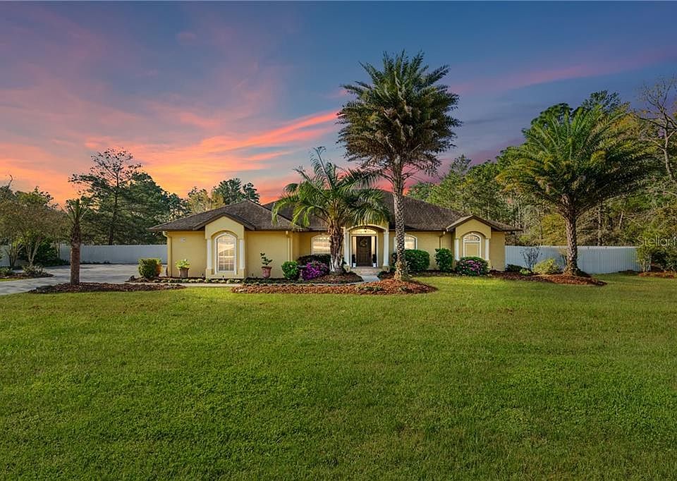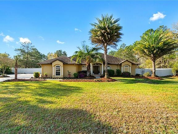 Executive style home located in desirable SW Ocala Waterway neighborhood. You'll fall in love with this large & well appointed 4 BEDROOMS & 3 FULL BATHS property. Sitting on 1.25 acre PROFESSIONALLY LANDSCAPED lot, this property feature many upgrades throughout: Exterior offers a COMPLETELY FENCED yard & mature landscaping with massive palm trees. Concrete Driveway has been expanded with a side-parking area. Backyard offers a large SMOOTH-FINISH CONCRETE DECK perfect for outdoor events. Automatic Sprinkler System. 2 AC units (updated 2012). The interior offers ENEREGY-EFFICIENT ICYNENE SPRAY FOAM INSULATION in attic. As you enter the elevated Foyer, you'll find WOOD-LIKE (textured surface) WATERPROOF & scratchproof Luxury Vinyl plank flooring throughout. Spacious great room with French-doors leading to covered & screened lanai. Crown Moldings throughout property. Two large Dining Rooms perfect for entertaining. Kitchen offers Stainless Steel appliances, pantry and GRANITE counters PLUS Double sink and undercabinet lighting. There is a Den and/or formal living RM or office. The MAIN BEDROOM features French-doors leading to 2 additional BONUS rooms which can be used as a sitting RM, nursery RM, home GYM, office and/or 2nd walk-in closet. These rooms have access to screened/enclosed lanai & backyard deck. MAIN BATH offers step-in shower, separate SOAKER TUB, double vanities, Quartz Counters and separate Toilet Room. LAUNDRY ROOM has front-facing Washer & Dryer plus sink. Located near Florida Greenway Trails with Walking/Biking access from neighborhood.