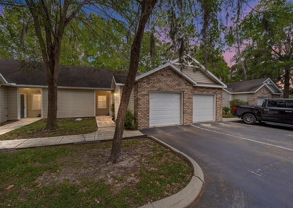 Discover the perfect blend of comfort and convenience in this spacious 2-bedroom, 2-bathroom condo located in the gated, amenity-rich community of The Gables. This beautiful unit boasts a spacious 1-car garage and a cozy screened patio, ideal for relaxing and enjoying Florida's lovely weather. The interior of the condo shines with high vaulted ceilings. The kitchen is fully equipped with major appliances and an in-unit washer and dryer in a separate laundry room. Both bedrooms feature walk-in closets, offering ample storage space, and the screened patio accessible from the living room is perfect for quiet evenings or morning coffees. Nestled just minutes away from Celebration Pointe, you have easy access to an array of shopping and dining options. Additionally, Butler Plaza's extensive retail offerings are just a short drive away. The University of Florida, UF Health, and the VA Hospital are conveniently located about 4 miles. Residents of The Gables enjoy top-notch facilities, including a large swimming pool with both open and covered lounge areas, a modern clubhouse, fully equipped workout room, tennis and basketball courts, all secured by a gated entrance.