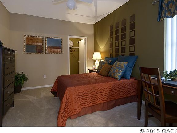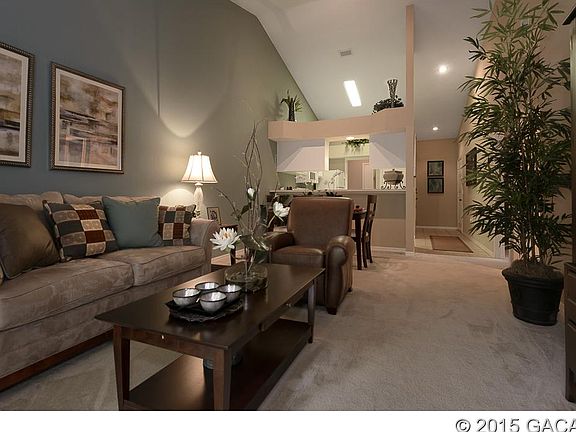 Quiet Gated community near Shands Hospital, the VA, I-75, Shopping,& UF! Spacious 1 story floor plan with no one living above or below you and an attached 1 car garage,large living room with dining area, & screened porch. Each spacious bedroom has it's own bathroom & large walk in closet. Upgrade packages available include granite counters, new cabinets, new appliances, new carpet and new paint. Amenities include: gated community with evening gate attendant, pool & hot tub, 24 hr fitness center, clubhouse, tennis,& basketball courts. HOA fee also includes cable. Short drive to Shands, the VA, & I-75. FHA Approved. These photos are of the upgraded model unit and show the upgrades available. Priced to Sell!