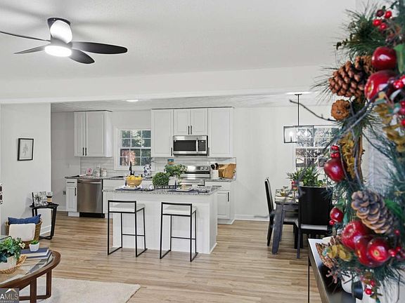 Welcome to this beautifully renovated home offering exceptional space, flexibility, and modern comfort in a peaceful Powder Springs setting. From the moment you arrive, you'll appreciate the charm, privacy, and thoughtful updates that make this property truly stand out. Inside, the home features a spacious and open layout designed for both everyday living and entertaining, with high ceilings, recessed lighting, and quality finishes throughout. The kitchen is a true highlight, offering an open-concept design with ample cabinetry, generous counter space, a large island, pantry storage, and seamless views into the main living areas-perfect for gatherings, family meals, and entertaining with ease. Multiple living and dining spaces provide flexibility for formal occasions, casual lounging, or home office needs. The bedroom layout is ideal for privacy and comfort, featuring a split-bedroom plan and oversized rooms, including a spacious primary suite with a well-appointed bathroom offering a soaking tub, separate shower, and modern finishes. Additional bedrooms are generously sized and adaptable for guests, work-from-home setups, or multi-generational living. The finished basement expands the living space even further, offering endless possibilities for a media room, game room, gym, guest suite, or additional living quarters, with both interior and exterior access. Outdoor living is equally impressive, featuring a deck, porch, and a private backyard with room to relax, entertain, or enjoy the surrounding natural setting. Located in a quiet yet convenient area, this home offers easy access to shopping, dining, parks, schools, and major highways, while still providing the space and privacy many buyers seek. Fully renovated and move-in ready, 4711 Brownsville Road delivers comfort, functionality, and long-term value in a desirable Powder Springs location.