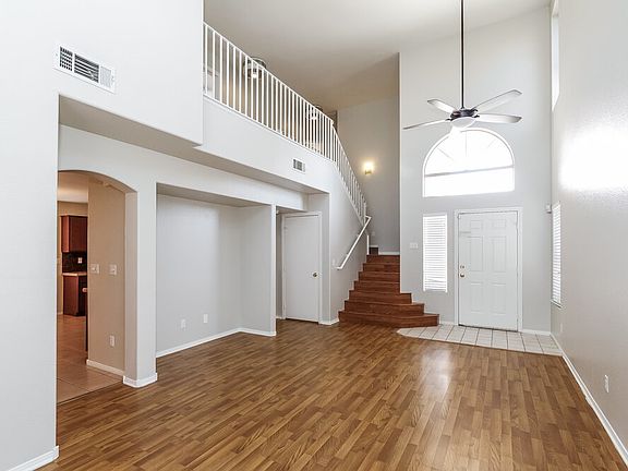 A 4 bedroom, 2.5 bathroom rental home located in North Las Vegas, NV with so much to offer! Once inside, take note of the open floor plan, measuring 1,965 square feet. You will also appreciate the two story ceiling in the living room and the ceiling fans throughout. Often referred to as the heart of the home, the kitchen includes a kitchen island, granite countertops and stainless steel appliances. Gather your friends and loved ones for a movie night in the family room. The bedrooms offer plenty of storage and the master suite boasts a walk-in closet and a private bath with double sink vanity, garden tub and separate shower. The outdoor space offers room to entertain on the large covered back patio.