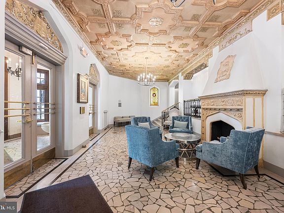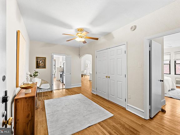 This bright and inviting two-bedroom, two-bath top-floor condo offers nearly 1,300 sq. ft. in one of D.C.’s distinguished “Best Addresses” buildings. A grand, ornate lobby leads to a residence filled with classic charm. The sunny white kitchen features stainless-steel appliances and a breakfast area with glass-door cabinets, while the formal dining room has French doors that open to a private balcony with tree-top views. A spacious primary suite is complemented by a versatile second bedroom, ideal for guests or a home office. Hardwood floors flow throughout. The home also includes a unique single-entry garage parking space, extra storage, heat covered by the condo fee, a residents-only EV charging station, accessible entrance and a shared washer/dryer just down the hall. Steeped in history, the building once housed Harry Truman during his Vice Presidential and Presidential years. Located just blocks from Metro, shops, and dining, this home offers the perfect blend of character, comfort, and convenience.