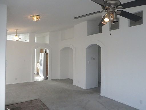 3 Br, 2 Ba, w/ major appliances, 2 living areas, 2 CG3 Br., 2 Ba., single story house w/ formal living area, den, dining off the living room, gas stove, refrigerator w/ ice maker, built-in dishwasher, closet laundry area, washer, gas dryer, carpet and vinyl flooring, 2 car garage w/ opener, electric furnace, refrigerated air, ceiling fans, xeriscaped front yard, patio and storage shed. No Pets Please.