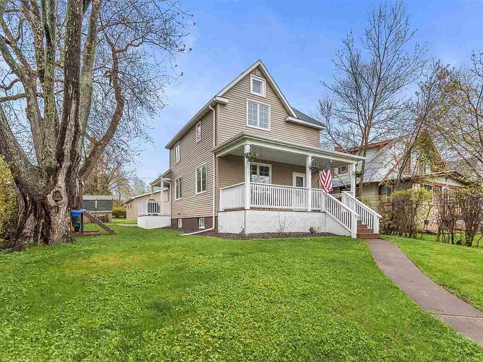 Lovely updated 3 bedroom 2 full bath traditional in Lakeside! Current owners have given the home numerous updates such as: plumbing, wiring, kitchen, windows, siding, roof, natural gas furnace. On the main floor is an open living room, dining room, kitchen with breakfast bar, and full bathroom. All bedrooms and second full bathroom are on the upper level. Bonus room in basement! The home sits on a nice corner lot. Has a large front porch and new 2+ stall detached garage. Don't wait on this one!