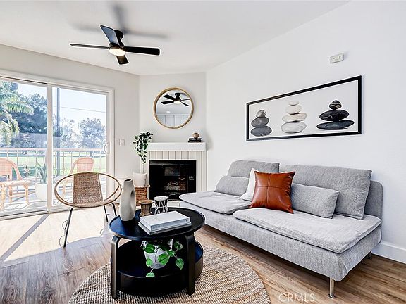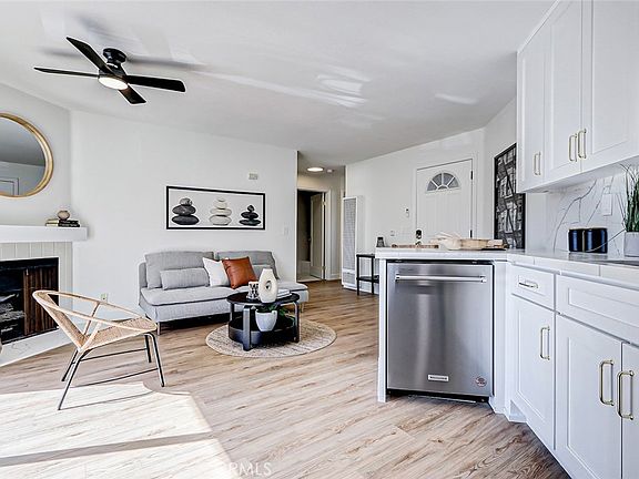 Stunningly Renovated 2-Bedroom, 1-Bath Condominium with Breathtaking Golf Course Views Step, where style and comfort seamlessly blend. The open floor plan is accentuated by brand-new engineered hardwood floors that flow throughout the main living areas, while the bedrooms are cozy with fresh, plush carpeting. The kitchen is a true showstopper, featuring sleek white cabinetry, top-of-the-line stainless steel appliances, and stunning quartz countertops—perfect for both cooking and entertaining. The spacious living room invites relaxation, with a charming fireplace creating a warm, inviting atmosphere. Step through the sliding doors to your private balcony and take in the serene, lush views of the golf course—an ideal spot for al fresco dining or simply unwinding in peace. The bathroom has been tastefully updated, offering a newly tiled shower, and polished nickel fixtures. Additional upgrades include recessed lighting, stylish new ceiling fans in every room, and fresh, neutral paint throughout, creating a bright and airy environment. For ultimate convenience, an in-unit laundry nook provides a tucked-away space for your laundry needs, and two assigned underground parking spaces are included, offering added security and ease. Located in a prime area with easy access to shopping, dining, the beach, entertainment, top-rated schools, and major freeways, this condo is truly a dream come true. Move-in ready and waiting for you—come see it today!