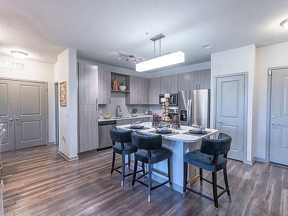 - Exterior features: Barbecue, Bocce Court, Built-In Computer Nook*, Business Center, Concierge, Custom Cabinetry, Flooring: Wood, Free Weights, Game Room, Garden, Granite Kitchen Islands, Meditation Studio and Stretching Room, Outdoor Meditation Studio and Stretching Area, Package Receiving, Pet Park, Pet Washing Station, Private Balconies*, Quartz Countertops, Smart Plug Technology from SmartRent, Soaking Bathtubs, TV Lounge, Virtual Golf and Sport Simulator