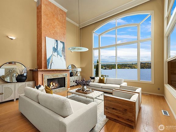 Frames of lake washingtonSerene water viewsLuxurious interiorsGourmet kitchenSoaring windowsSpa bathsReflective barreled ceiling