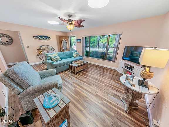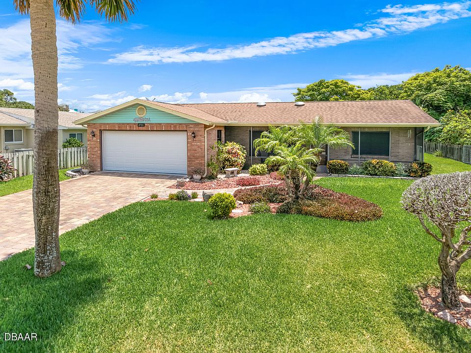 This awesome updated beachside home offers the perfect blend of comfort, style, and location. Nestled just one block to the pristine, sugar-sand ''no drive'' beach of Ponce Inlet! The beautifully landscaped large lot boasts a paver driveway and manicured lawn with great curb appeal! Enter this coastal retreat and your eyes focus on the light and bright split bedroom floor plan with a coastal beachy feel. Stylish plank flooring throughout the living room, bedrooms and bathrooms & porcelain tile in the kitchen create a seamless blend of style and functionality. The updated kitchen boasts Granite countertops, stainless steel appliances, light cabinetry and a large pantry with decorative double doors. The primary bedroom has a walk-in closet and the primary bathroom is updated. Your guests will enjoy the two spacious guest bedrooms, and the updated guest bathroom has a Granite countertop with dual sinks and a tub/shower combination. The spacious two-car garage includes a pull-down attic for additional storage needs, and the large fence yard has a double gate providing space for your RV or boat! There are French doors from the dining area to the Florida room which has vinyl windows and overlooks the large back yard. Relax and enjoy your morning coffee in the inviting Florida room facing east while you watch the sunrise and hear the soothing sounds of the surf. Wind down at the end of the day with your glass of wine while you see gorgeous colorful sunsets from your west side screened patio. Sun tunnels create an abundance of natural light, and ceiling fans in every room ensure year-round comfort. Upgrades include a brand new HVAC system installed in June 2024, a new electrical panel in 2019, and a roof installed in 2007. Convenient outside hot/cold shower to rinse off after your daily beach time! You'll have peace-of-mind knowing this home is situated in Flood Zone X, so flood insurance is not required. Walk or bike to the historic Ponce Inlet Lighthouse and Jetty Park encompassing 52 acres of beachside sanctuary, waterfront restaurants with entertainment, Marine Science Center, parks & nature preserves, charter fishing, marinas, playgrounds, basketball, pickleball, tennis, dog park/beach and more!! Excellent school district. Connection to city sewer is available and required by the new owner. The impact fee is $2092.50 and the fee to connect is $1775. There is also a tapping fee which is $430.