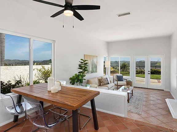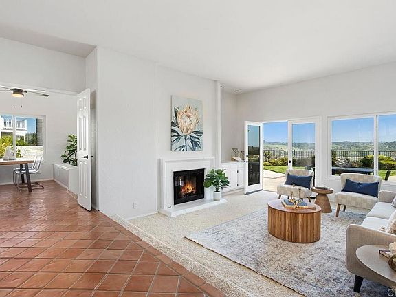 VIEWS! VIEWS! VIEWS! This Single Story is just minutes from the beach, 1-5, and Carlsbad Village. This exceptional home sits on one of the largest view lots in the sought after neighborhood of Capri in Carlsbad. Nestled in a very quiet, private cul-de-sac, this home has breathtaking 180 degree views, east, south and west! Watch the sunrise over the Ocean and Mountains with your coffee in the morning while enjoying your beautiful landscaped backyard. The expansive backyard is the perfect space for entertaining. Enter through the front door entry way and immediately enjoy your views and the spacious formal living room and dining room. The kitchen opens up to the dinette and family room. Fireplaces in family room, living room and Primary Bedroom. Primary Bedroom has a bedroom attached that can be used as an office or nursery. Newer dual pane windows keep you warm in the winter and cool through the summer. Room for pool and/or possibly an ADU! This desirable home is located on over a half acre corner lot and won't last long!