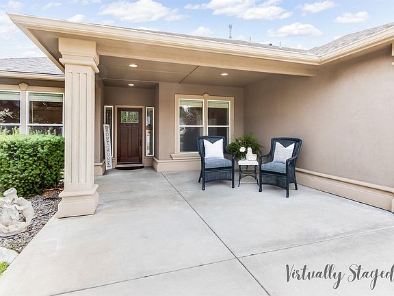 MLS# 287316 Welcome to this 4 bedroom, 1.75 bath home built in 2012 by Hammerstrom. Designed with a split-bedroom floor plan - it offers both privacy and functionality for today’s lifestyle. Enjoy coffee on the covered front porch. The foyer flows into the spacious great room featuring a gas corner fireplace, vaulted ceilings, lighted ceiling fan, in floor electrical outlets and electric window blinds. Enjoy easy care tile and hard wood flooring (except in bedrooms and great room). The kitchen has knotty alder cabinetry with over and under-cabinet lighting, slab granite counters, stainless steel appliances (including a gas range/double oven, microwave, refrigerator and 1 yr old dishwasher), updated pendant lighting and integrated glass presentation cabinet doors. A convenient mudroom sits just off the garage entry - plus the utility room that includes a sink and plenty of storage cabinetry. The 15x13 primary suite has crown molding and accent lighting. The primary bath has dual sinks, a private water closet, a walk-in closet and a spacious walk-in tile shower with dual heads (1 rainfall shower head). One guest bedroom (off of the foyer) has French doors and a closet - making it a great home office, play room, etc.. The 2 additional guest bedrooms share a full bath. There is an owned water softener and a brand new water heater replaced in August 2025! Car enthusiasts and hobbyists will love the 1,072 sq ft attached, finished 4-car tandem garage (3 bays 39x29 & tandem 26x11) with dual garage door openers. The extra deep tandem is perfect for a workshop, storage and more! Relax on your large 27x12 covered back patio with ceiling fans, speakers and wired for a hot tub. The fully fenced backyard, concrete mow curbing and timed underground sprinklers make for easy maintenance. Located less than a block from Desert Dunes Park and with quick access to the freeway, shopping, and dining - this home has it all!