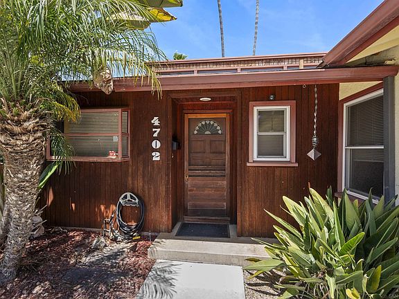 This charming Mt Street house is located in the heart of West Clairemont close to shopping, the beaches, great schools & Mount Etna Park. The home is teeming w/ both craftsman & post modern flair including high vaulted open beam ceilings in the living room & natural wood moldings & trim throughout. Upgrades include owned SOLAR, a pebble bottom pool & an upgraded forced air unit w/AC. The terrific floorplan boasts separate living & family rooms, large master suite & French doors that lead out to the covered patio & resort like backyard. Welcome home!