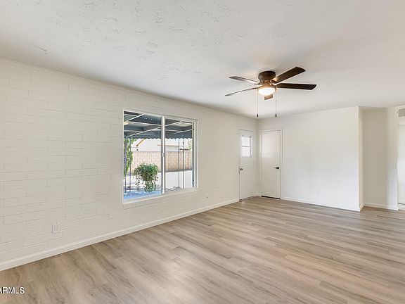 Charming 3 bedroom, 2 bath home has been renewed from the inside out. Starting underground, with a FULL sewer replacement. Outside has been freshly painted with a welcoming pallet. Open into the spacious family room greeted with a light and bright aesthetic. Continue to the kitchen. Yes, it may be the cutest kitchen you have ever seen. Light grey cabinetry topped with quartz counters, finished with stainless steel appliances. The real showstopper is the brick backsplash that adds texture and character to the space. Head into the primary bedroom and bathroom. A little pop of color in the bathroom with the fun blue vanity and settle blue tones in the shower tile. Two more bedrooms and guest bathroom with coordinating vanity. Inside laundry, no going outside into the heat! Fully fenced backyard with extra-large covered patio. Access to the one car garage from the back of the house. Updates rundown: Full sewer replacement, new windows, interior and exterior paint, new flooring throughout, new baseboards, all new kitchen and bathrooms, interior laundry, minor electrical updates, 2 year old roof!