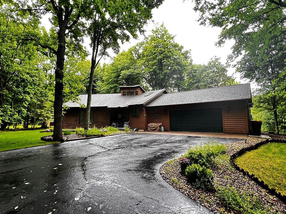Welcome to this cozy home tucked 220 ft off the road on 2.75 acres of a private paradise with a true Up north feel located on a quiet residential road near the desirable subdivision Pine River Estates. From the road you will notice the home is hidden away by all the foliage of the trees creating a secluded feel. The driveway was recently sealed, and crack filled in May 2023, the roofer is new from 2007 and was steam cleaned in 2019 by Dun-Rite, property contains underground sprinkler system that is programmed to 3 different cycles every day. There is patio to sit outside and relax as you enjoy the sounds of nature and observe all nature's fury and feathered friends. The Eau Claire River runs through just below the embankment and you can access the river walking down it. The yard has a underground dog fence and seller will leave the collar to go along.,As you approach the beautiful well-maintained home you will notice the covered porch which has plenty of room for chairs to sit and enjoy your morning cup of coffee. You walking into a large foyer that looks into the living room with cathedral ceilings and adjoins to the dining room with patio doors leading to a patio and enough windows to enjoy the beautiful, wooded back yard. There is a electric clear view window. The kitchen contains Feather Stone cabinets and a sky light to let in the natural light, main floor laundry off of the kitchen and attached 2 car garage that is insulated and is heated with a Hot Dawg heater. Off the living room is a bathroom with walk in shower, down the hallway you will find the master bedroom with a sliding door to a patio, a bathroom with a shower and tub that contains jets, and 2 closets and windows that let you enjoy the outdoor views. There are 2 more bedrooms on the main floor. The basement has plenty of storage space with a extra storage room, furnace is new form 2004, water heater is 2007, owned water softener with neutralizer that Charlies Hardwear comes once a year to service and maintain if you would like to continue that service. The home has a Martin security system that detects smoke, heat and burglary. Located close to the hospital, target and near all the Schofield shops but yet a country feel. This is a very unique property you will not want to miss out on.