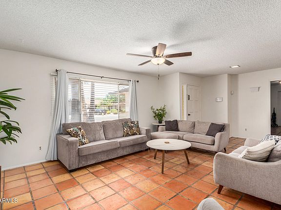 Discover the charm of this single-level home with POOL nestled on a prime corner lot! Offering 4 beds, 2 baths, 2-car garage, and a low-care landscape. The inviting interior features abundant natural light, a neutral palette, & Saltillo tile flooring in all the right places. Great floor plan with a formal living room and a combined family & dining room. The kitchen boasts SS appliances, granite counters, ample wood cabinetry, and a breakfast bar. The carpeted main bedroom has a private bathroom with dual granite sinks. Its sliding doors open to the large Arizona room with a fireplace, where you can relax w/out worrying about the weather! With a fenced pool, the backyard promises year-round enjoyment. The RV gate is a plus! Close to schools, shopping, restaurants, & freeways. Welcome home!
