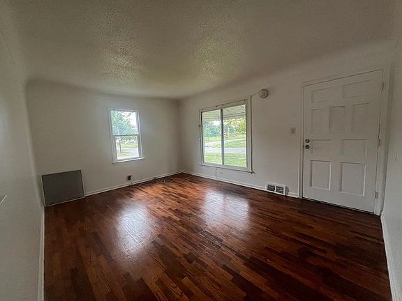 Welcome to this inviting 3-bedroom, 1-bathroom home featuring a full basement and a detached garage. Bright, neutral walls pair beautifully with the natural hardwood floors and vinyl plank flooring throughout, creating a fresh and welcoming atmosphere. The white kitchen and bathroom offer a clean, timeless look that’s easy to personalize. Enjoy quiet mornings on the cozy covered front porch, and make this well-kept home your own.