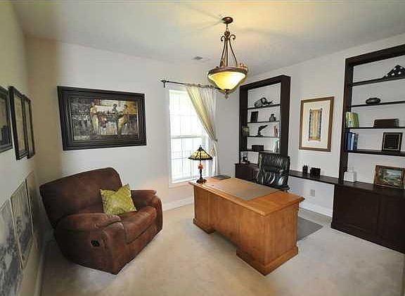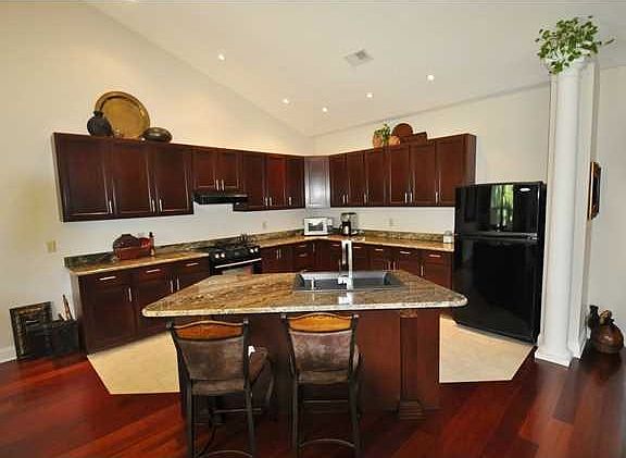 Absolutely gorgeous home and really one of a kind! Immaculate is an understatement! As you enter the spacious foyer you are greeted by a very unique fountain in the wall. You enter into a vast room with cathedral ceilings which boasts the great room kitchen and dining! All open and spacious. This truly amazing space is beyond belief! The hardwoods throughout the house are brazilian cherry. The great room has book cases on one wall. The kitchen is beautiful with ceramic tile, Sukuri granite counters, hard maple cabinets, recessed lighting, Jenn-Air gas cook top and a tempered granite sink. The great room also has a hand carved mantle around a gas fireplace. Off the great room area is a cozy office with built in books shelves and French doors. Down the hall is the spacious master suite